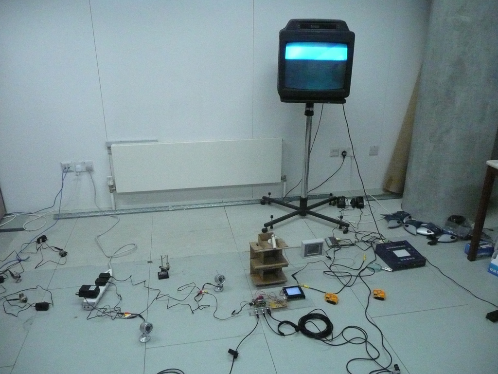 At my studio at Goldsmiths College, I carried out various artistic experiments.  I invited Charlie Gere and had conversations with Janis Jefferies and discussed my idea of transparency (a reversal of the panoptican where everything is watched from one perspective now and everything is transparent from all perspectives  and available across networks.  Everything is transparent: My studio became the open process studio … laboratory.  I tried this out in Plymouth in situ in 2008 as a Public Domain Studio and made a variety of works, working in the gallery and created a public domain studio as a laboratory and experimental space. This work (the studio as lab) is now in version three for my work at Lanternhouse (UK) this summer 2010.