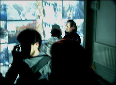 The images you see on the screen are images coming from networked cameras located around USA in real time. The computer manipulates the real time experiences and life of America as it unfolds. The city and its population are all actors in this real time parallel reality of surveillance and control unleased across the network of the internet. The artwork offer an alternative reality, a multi point perspective of time and space creating this new aesthetic experience manipulated by the machine across the nerwork to give an alternative meaning. Made in 2005