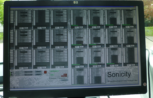 Underlying conceptual theme. Embedded in ubiquitous computing sensor spaces is the concept that we are at a grand scale surveying and monitoring the environment which is in essence parsing this data through bigger systems of control. Can we use new technologies to imagine a world where we are liberated and empowered, where finally all of the technology becomes more than gimmick and starts to actually work for us or are these technologies going to control us, separate us, divide us, create more borders. My wireless sensor network is set up to "visualize" the space all around us as 'worlds' full of data. These new data-spaces can help us understand the fundamentals of our outside environment. This speculative artworks therefore, reinterprets the ever-present flow of data and the creation of a sonfication that demonstrates a new level of understanding of the hidden spaces by combining many places at once creating the multi-point perspective, while addressing in a broader context the ethical problems of manipulating data and securitisation of the expanding virutal environment. These practical investigations are examples of digital art system experiments, and work as prototypes that test the convergence of data streams. For artistic and technological purposes, this projects again uses a wireless sensor network to create experimental software interfaces which are experienced by the public as a new media artwork. In this sense, testing these new types of interface in this way leads to their use as epistemic tools, of potential interest to other artists, urban planners, noise mapping experts and the broader public, by sharing the resulting data streams that could be used to make, for example, more interfaces for informatics, noise and sound maps for noise pollution, or urban analytics for urban planning; as well as for cultural use and in this case art.